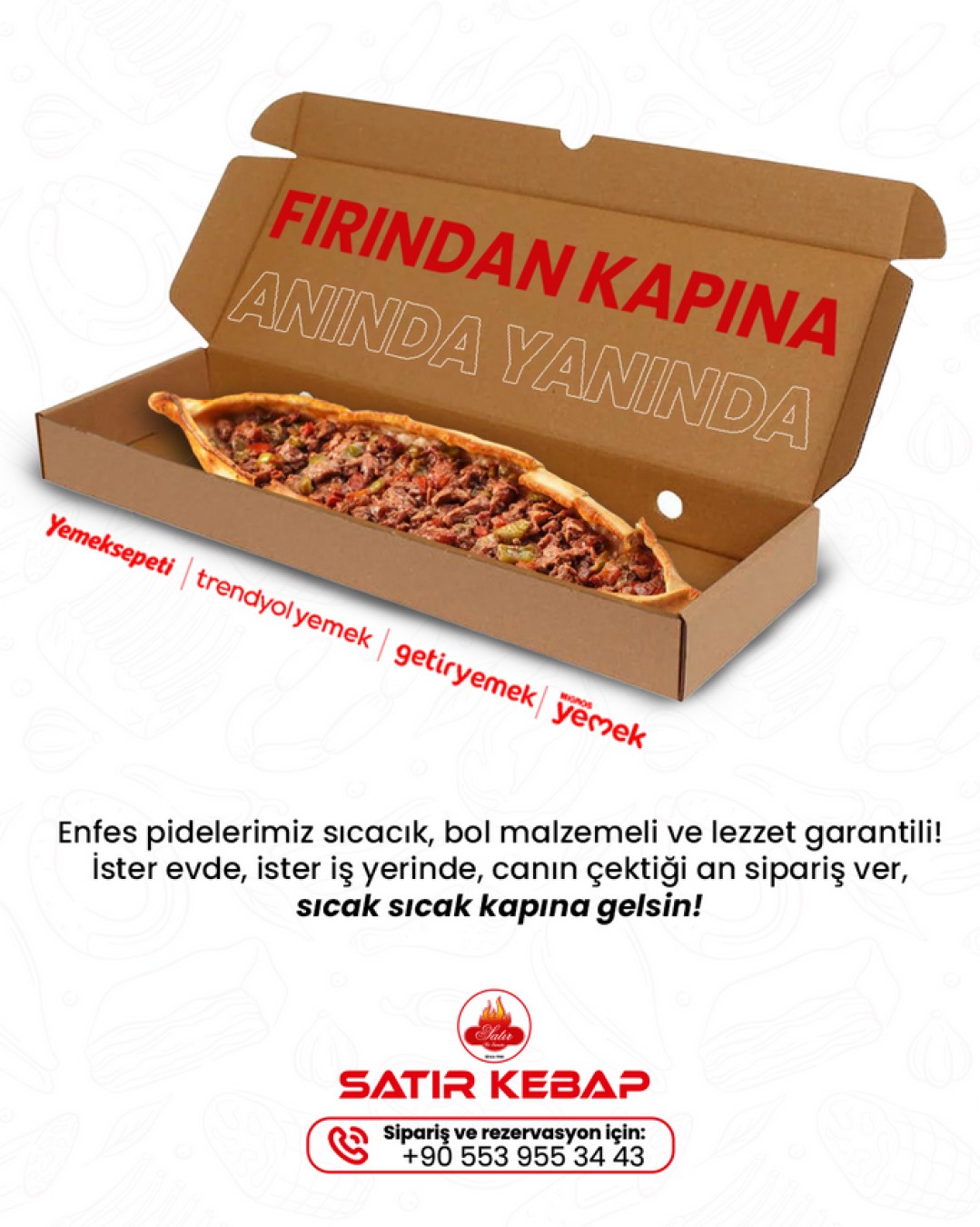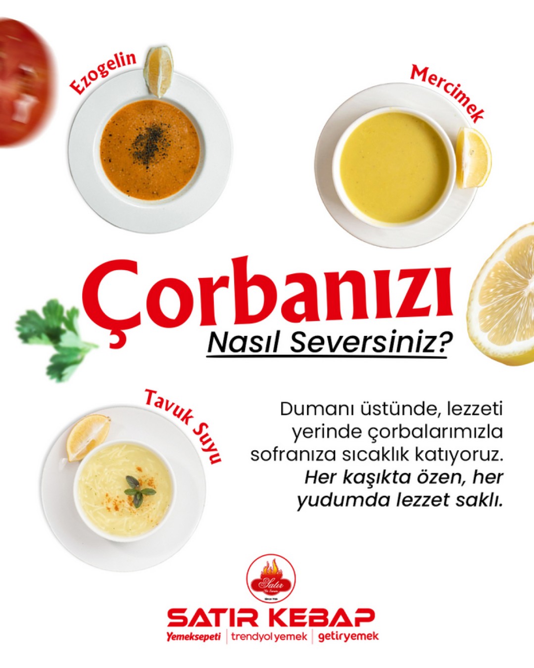 Satır Kebap menüsü, kebaptan pideye, tatlıya her damak zevkine hitap eden lezzetlerde dolu!